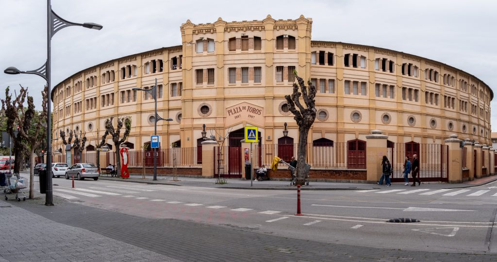 Mit Fotos einiger der altehrwürdigen Gebäude der Stadt kann ich also nicht dienen, die waren hinter den Menschenmassen verschwunden. Dafür wenigstens eine Außenaufnahme der Plaza de Toros, der Stierkampfarena aus dem Jahr 1887, die heute neben Stierkämpfen auch für Konzerte etc. dient.
