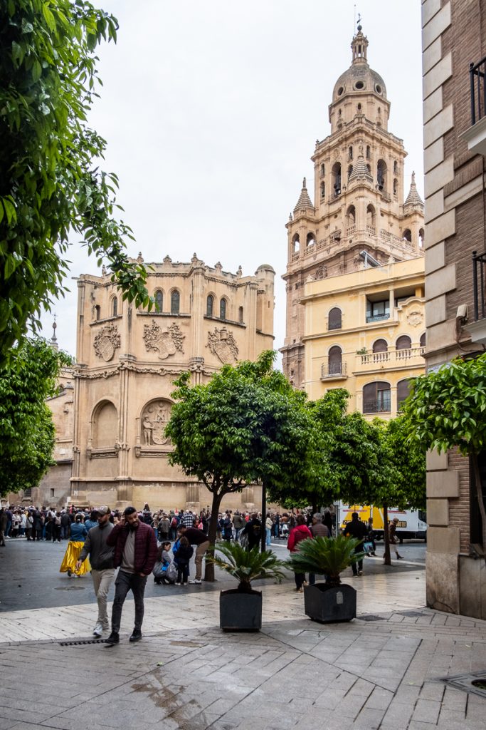 Heute also ist Zeit, die Stadt zu besuchen. Murcia ist eine Universitätsstadt, die im 9. Jahrhundert von den Mauren gegründet wurde und heute Hauptstadt der gleichnamigen Region, zu der auch etwa 250 km der Mittelmeerküste gehören. Dort zieht es auch hauptsächlich die Touristen hin. Murcia selbst soll – so habe ich gelesen – touristisch noch unbekannt sein. Heute geht es also in die Stadt, ein ruhiger Bummel durch die Altstadt, mit ihrer Kathedrale aus dem 15. Jahrhundert, die im Laufe der Zeit immer wieder angebaut wurde.
