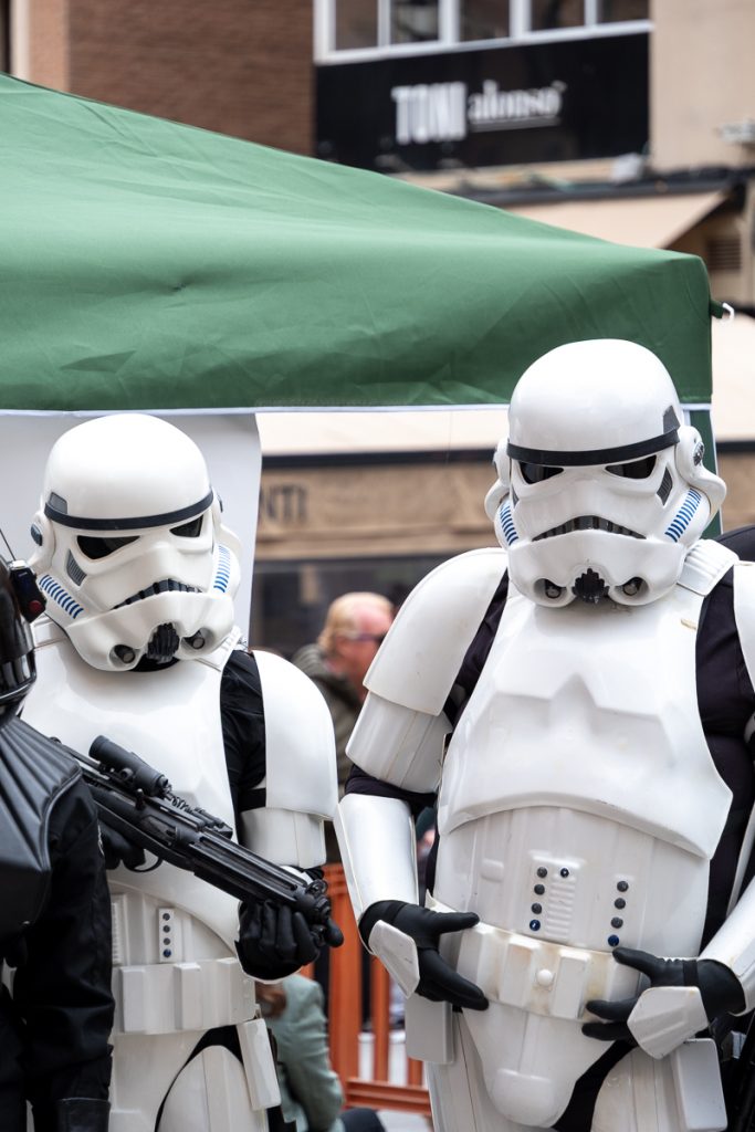 Da muss die dunkle Seite der Macht außen vor bleiben, die hat sich auf einen nebenliegenden Platz zurückgezogen, wo Stände und Verkäufer locken. Bei meiner Recherche im Internet habe ich nichts konkretes gefunden. Es wird offensichtlich einer der vielen Umzüge und Prozessionen sein, die sich, je näher die Karwoche und Ostern kommen, im katholischen Spanien häufen.