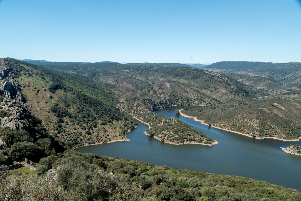 Heute steht wieder ein Ortswechsel an, die Fahrt führt mich in den Nationalpark Monfrigüe, nördlich von Caraceres. Es ist der einzige Naturpark in der Extremadura und er erstreckt sich rechts und links des Flusses Tajo, in Portugal als Tejo bekannt. Es ist der längste Fluss der Iberischen Halbinsel mit knapp über 1.000 km Länge, er mündet bei Lissabon in den Atlantik.