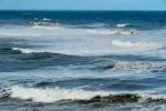 Die Steilküste mit ihren vorgelagerten Felsen und starkem Wellengang ist sehr beeindruckend, es gibt viele Stellen, an denen sich die Surfer austoben können. Ansonsten bietet die Landschaft nichts Besonderes, im Landesinneren wir Gemüse und Kohl in allen möglichen Formen angebaut. Ab und zu komme ich an einer alten Windmühle vorbei, leider stehen hier nur noch die Grundbauten, die Flügel und die Bespannungen fehlen. Auch heute ist die Luft gelblich, der Staub noch da.
