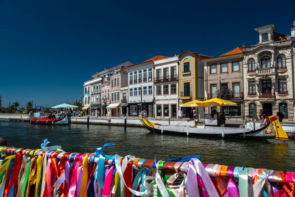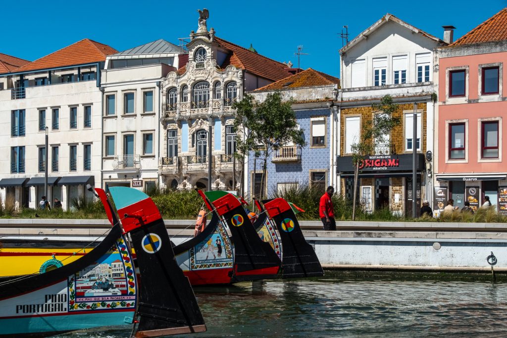 Weiter geht es zurück zur portugiesischen Küste nach Aveiro. Die Kleinstadt, die aufgrund ihrer Kanäle auch gerne als „portugiesisches Venedig“ bezeichnet wird, ist heute sehr touristisch orientiert. Überall werden Fahrten mit traditionellen, farbenfroh bemalten Moliceiro-Booten angeboten, wie sie früher zur Seetangernte genutzt wurden.
