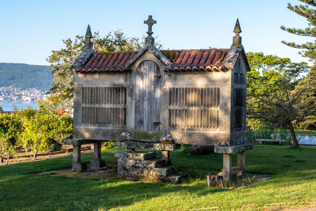 Wir haben eine ruhige Nacht auf dem Stellplatz verbracht und entscheiden, noch eine Nacht hier zu verbringen. Neben dem Stellplatz gibt es ein kleines, steinernes Gebäude mit Verzierungen, hochgebaut auf Pfeilern. Hier in der Gegend sieht man viele dieser Gebäude, neben Häusern, aber auch auf Feldern und Wiesen. Es handelt sich hier um alte Getreidespeicher, zum Schutz vor Mäusen etc. nicht unmittelbar auf dem Boden gebaut.