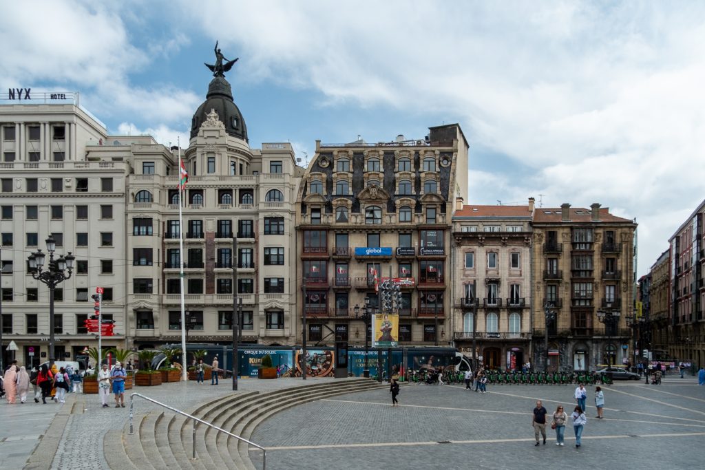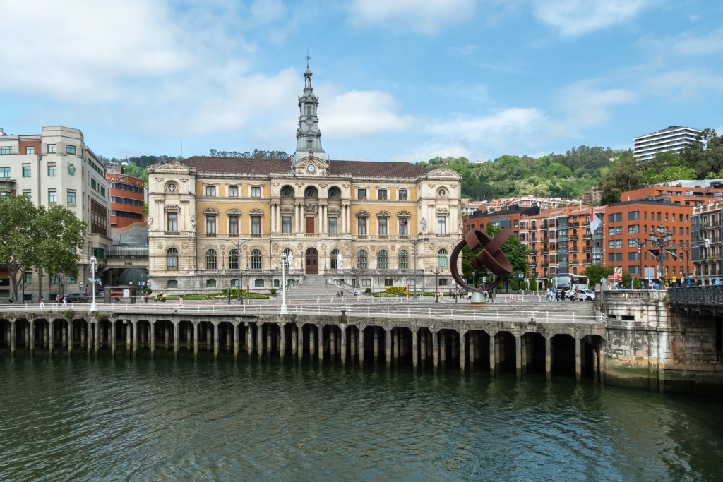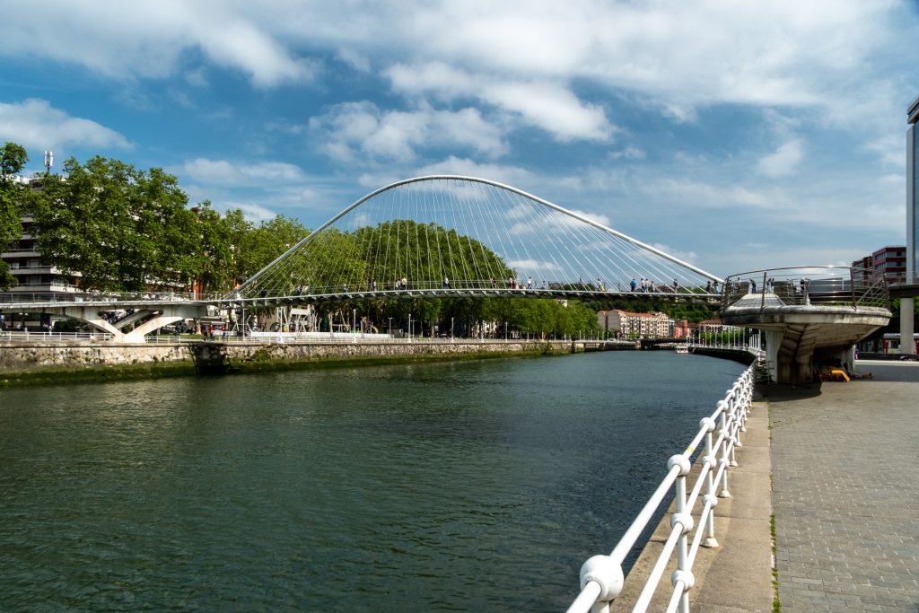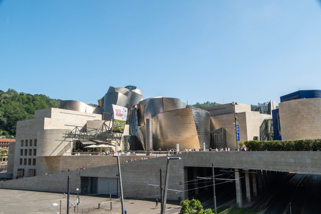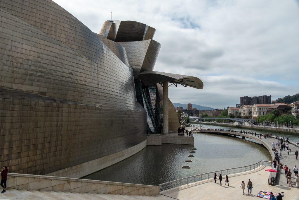 Nach dem Besuch in einem kleinen Café fährt Christine mit dem Bus zum Platz zurück. Ich bummle am Fluss entlang bis zum Guggenheim-Museum in der einzigartigen Architektur von Gehry. Ich kenne bereits seine zwei Bauten im Düsseldorfer Medienhafen, die runden und fliessenden Formen, die fast schon organisch scheinen.